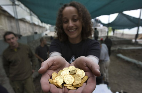 組圖:以色列出土兩百多枚7世紀(jì)金幣(2)