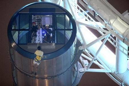 該摩天輪高165米,相當(dāng)于42層樓高,轉(zhuǎn)一圈約半小時,每個座艙可載28人。這次已是自年初開幕以來第4次故障,最近一次于本月4日,摩天輪停轉(zhuǎn)5小時,70人在炎熱天氣下半天吊。