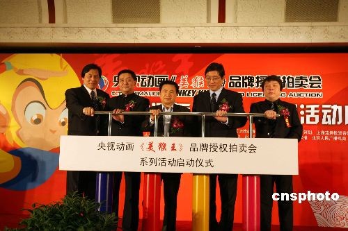 12月29日,《美猴王》品牌授權(quán)拍賣會(huì)啟動(dòng)儀式在北京舉行。該活動(dòng)是央視動(dòng)畫2009年動(dòng)漫主題營(yíng)銷活動(dòng)的開篇之作。除此之外,另有15部動(dòng)畫精品,在國(guó)內(nèi)甚至國(guó)際行業(yè)內(nèi)首次以拍賣形式出售版權(quán),旨在搭建中國(guó)動(dòng)漫營(yíng)銷第一平臺(tái),締造新興動(dòng)漫產(chǎn)業(yè)模式。中新社發(fā) 任海霞 攝
