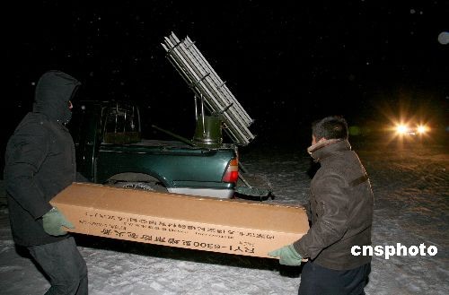 12月29日凌晨,新疆哈密普降小到中雪,降雪有效的緩解了旱情對當?shù)氐挠绊。?jù)了解,新疆哈密自入冬以來持續(xù)干旱少雪,隨著中亞低渦東南下冷空氣對哈密區(qū)域的影響,哈密地區(qū)及時進行了火箭彈人工增雪作業(yè),收到良好的效果。中新社發(fā) 蔡增樂 攝