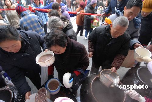 1月3日是臘八,杭州的一些老字號藥館、寺廟及社區(qū)免費向市民派送臘八粥。當(dāng)天“杭城盡飄臘八粥香”。今年老字號藥館張同泰特別采用新鮮鐵皮石斛汁熬制臘八粥,還放上了珍貴的鐵皮石斛花。除了祈求來年日子過得紅紅火火、增福增壽外,還希望大家擁有健康的身體和愉快的心情。中新社發(fā) 引煒 攝