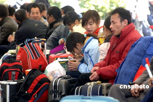 福州火車站內(nèi)等車的旅客閉目養(yǎng)神。中新社發(fā) 王東明 攝