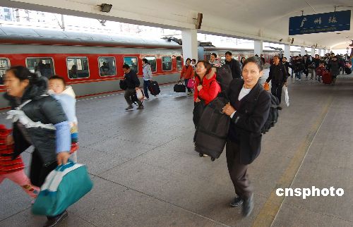 廣州火車站人潮初現(xiàn),進站的返鄉(xiāng)旅客十分興奮。中新社發(fā) 柯小軍 攝