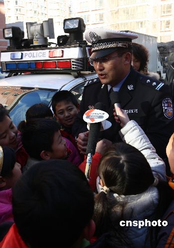 1月14日,北京崇文區(qū)交通支隊民警為崇文小學學生和家長講授交通安全課。中新社發(fā) 杜洋 攝