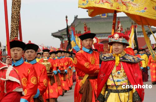 1月20日,北京天壇公園舉行祭天彩排。該祭天表演,是天壇第五屆文化周上重要一幕,展演活動從大年三十至正月初五舉行,總共有288人參加這場大規(guī)模的文化展演,表演總時長達90分鐘。 中新社發(fā) 廖攀 攝