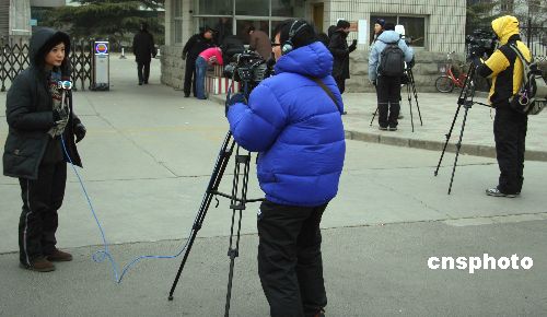 圖為當(dāng)日上午9時(shí)左右,石家莊中級(jí)法院門(mén)口來(lái)自香港的幾家媒體早已“開(kāi)工”。中新社發(fā) 翟羽佳 攝