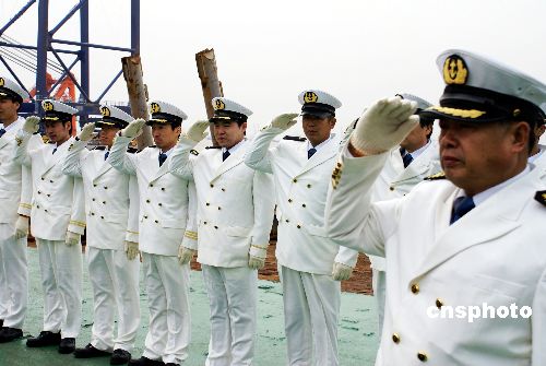 1月23日上午,上海振華港機集團在長興島基地為“振華4號”輪順利返航舉行盛大歡迎儀式,“振華4號”船長彭維源帶領(lǐng)29名船員整裝首次集體亮相,并向眾媒體記者和現(xiàn)場來賓介紹了抗擊索馬里海盜的具體經(jīng)過。歡迎儀式現(xiàn)場,振華港機集團向每位船員頒發(fā)1萬美元獎金,并授予船長“振華功臣金質(zhì)獎?wù)隆。北京時間2008年12月17日中午,中國交通建設(shè)集團所屬“振華4號”輪在途徑亞丁灣水域時遭遇2艘海盜船襲擊,有9名海盜登船,持沖鋒槍和火箭筒在甲板上與我船員對峙,我船上的30名船員用高壓水槍和自制燃燒彈自衛(wèi)并反擊。海盜在隨后趕來的國際救援軍艦直升機的威懾下,終于放棄攻擊,狼狽逃竄。中新社發(fā) 李根 攝
