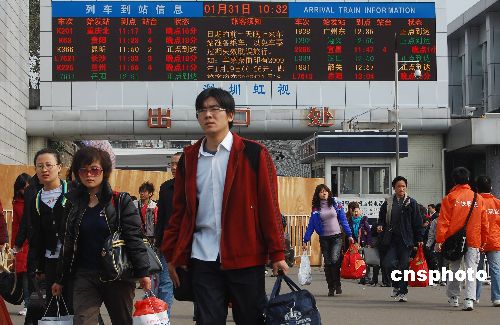隨著春節(jié)長假臨近結束,廣州火車站出站口人流開始明顯增多,外來工和大學生畢業(yè)生紛紛提前返粵找工。中新社發(fā) 柯小軍 攝
