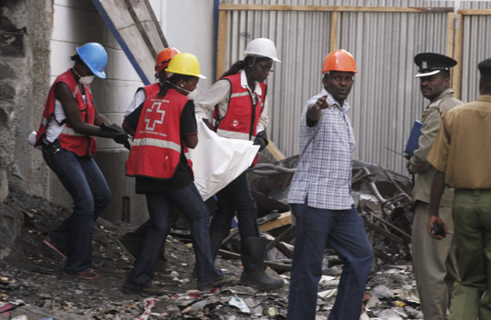 1月30日,救援人員在肯尼亞首都內(nèi)羅畢市中心一家被焚毀超市搬運(yùn)死難者遺體。28日發(fā)生的這場大火已造成至少19人死亡,另外還有數(shù)十人失蹤。