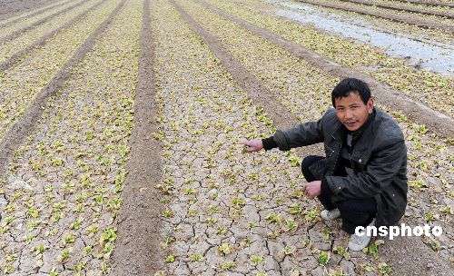 安徽省氣象臺近日發(fā)布干旱紅色預(yù)警,預(yù)計2月1日至8日,全省綜合氣象干旱指數(shù)達(dá)到特旱(氣象干旱為50年一遇),淮河以北地區(qū)將有60%以上的農(nóng)作物受旱。安徽省防汛抗旱指揮部近日也發(fā)布旱情1號通報。通報介紹,2008年10月下旬以來,全省合肥以北地區(qū),特別是淮北地區(qū)降雨嚴(yán)重偏少,發(fā)生嚴(yán)重旱情。據(jù)統(tǒng)計,全省受旱面積已達(dá)2417萬畝,其中嚴(yán)重受旱面積1200多萬畝。中新社發(fā) 張延林 攝