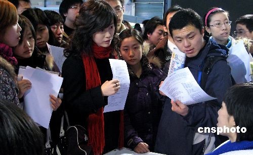 圖為大學生在一家專賣店招聘臺前應聘店長、模特、導購員等職業(yè)。中新社發(fā) 鄒憲 攝