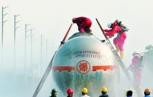 與此同時(shí),37輛消防車也分別從番禺各地奔赴槽罐車的目的地化龍鎮(zhèn)。在4輛警車及陸續(xù)趕來的消防車的護(hù)送下,槽罐車背頂火苗,沿著規(guī)定的路線勻速前行。救援人員說,“那時(shí)槽罐車就像是一個(gè)炸彈在馬路上行走,一旦因各種原因停下,就有可能爆炸”。