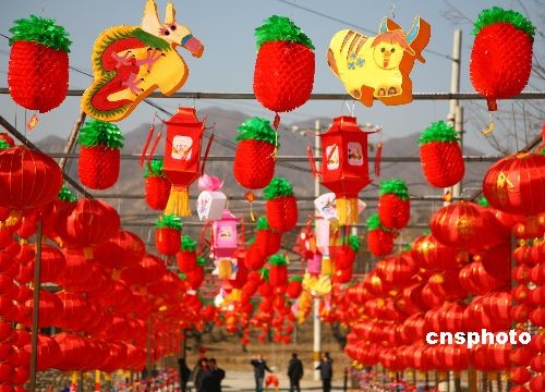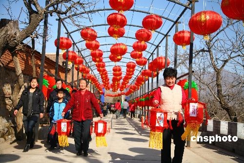 2月9日,紅廟村紅燈籠走廊。當(dāng)日,北京市懷柔區(qū)紅廟村隆重舉辦“北京九渡河首屆元宵燈會(huì)”,從入村路口到進(jìn)村街道直至村內(nèi)的大小巷道,萬(wàn)盞花燈,營(yíng)造出一片燈的海洋。