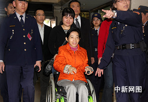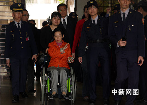 2月10日, 臺(tái)北地方法院再次傳喚陳水扁之妻吳淑珍到庭應(yīng)訊,繼續(xù)審理前臺(tái)灣地區(qū)領(lǐng)導(dǎo)人陳水扁家所涉弊案。吳淑珍在連續(xù)十七次拒不出庭后,今天終于現(xiàn)身。中新社記者 陳立宇攝
