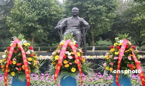 2月19日,廣安區(qū)協(xié)興鎮(zhèn)牌坊村村民在為小平銅像獻(xiàn)花以示懷念。當(dāng)日,是世紀(jì)偉人鄧小平逝世12周年紀(jì)念日,四川省廣安市和來(lái)自全國(guó)各地的各界人士紛紛自發(fā)前來(lái)為鄧小平銅像獻(xiàn)花以示深切懷念。中新社發(fā) 杜修戰(zhàn) 攝