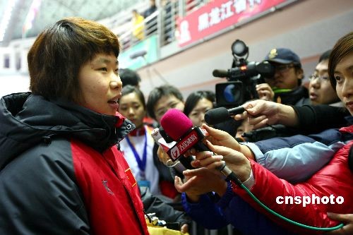 圖:女子短道速滑周洋摘得大冬會中國首金(2)