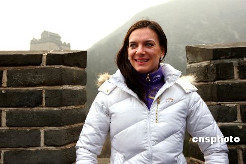 3月4日,撐桿跳高女皇、俄羅斯名將葉琳娜·伊辛巴耶娃游覽北京居庸關(guān)長(zhǎng)城。伊辛巴耶娃此次來華是與中國(guó)某著名體育品牌公司簽約,成為其新的產(chǎn)品代言人。中新社發(fā) 富田 攝