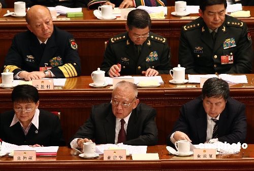 3月5日上午,十一屆全國人大二次會議在北京人民大會堂開幕。全國政協(xié)副主席、前香港特首董建華(下排中)列席。中新社發(fā) 杜洋 攝
