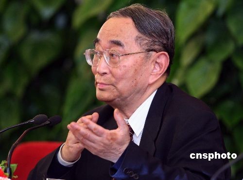 全國政協(xié)常委、著名經濟學家厲以寧在3月6日下午舉行的全國政協(xié)十一屆二次會議記者會上說,當前樓價居高不下,原因是地價高。他還回答了關于上調資源增值稅的說法和提高勞動收入在國民收入中分配比例等問題。中新社發(fā) 宋吉河 攝