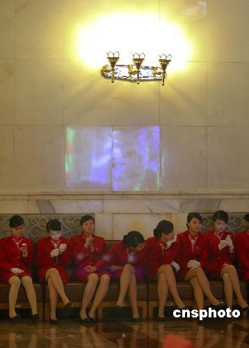 3月12日,全國(guó)政協(xié)十一屆二次會(huì)議舉行閉幕大會(huì)。大會(huì)開始前,服務(wù)人員在人民大會(huì)堂的椅子上休息。中新社發(fā) 盛佳鵬 攝
