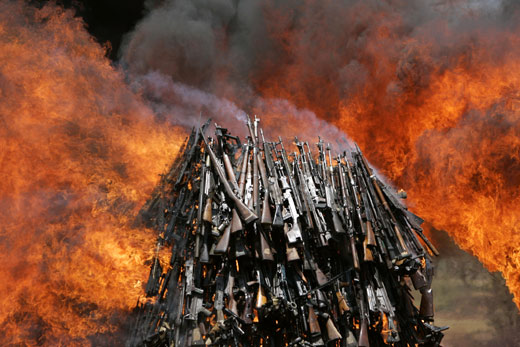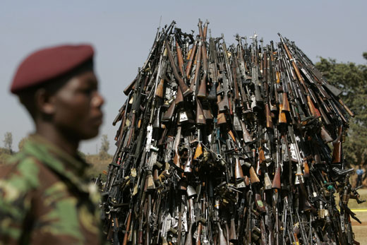 圖:肯尼亞警方集中銷毀繳獲的非法槍支