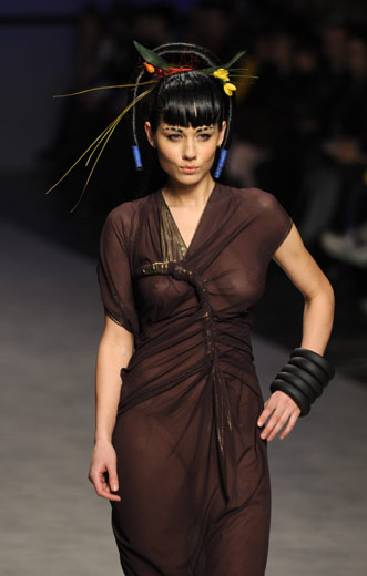 3月16日,模特在烏克蘭首都基輔舉行的時(shí)裝周上展示造型奇麗的發(fā)型設(shè)計(jì)。