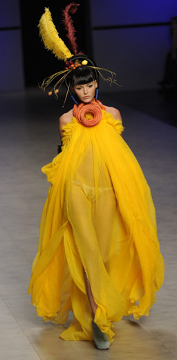 3月16日,模特在烏克蘭首都基輔舉行的時裝周上展示造型奇麗的發(fā)型設(shè)計。