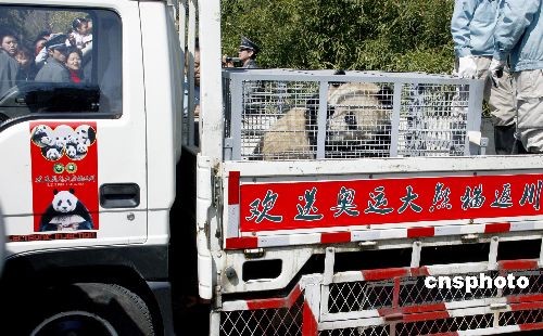 圖:北京8只奧運大熊貓啟程“回家”