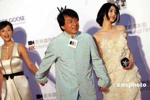 三月二十二日,巨星成龍攜女星范冰冰、徐靜蕾出席香港國際電影節(jié)開幕酒會(huì)。今屆香港國際電影節(jié)出席的影視紅星、嘉賓人數(shù)突破以往紀(jì)錄,比去年多出百分之五十八,成為陣容最強(qiáng)大的一屆。中新社發(fā) 洪少葵 攝