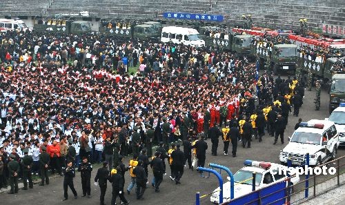 2009年3月26日,湖南省郴州市在東風(fēng)廣場召開公捕公判大會(huì),對(duì)一批犯罪嫌疑人和犯罪分子進(jìn)行公開刑拘、逮捕和判決,對(duì)罪行極其嚴(yán)重的犯罪分子判處死刑。 中新社發(fā) 賀茂峰 攝