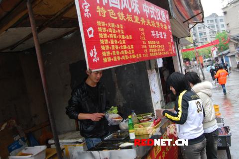 28日下午,毛毛雨。記者到長沙墮落街一探究竟,在問明來意后,帥哥淡淡一笑稱自己也聽房東說了紅網(wǎng)論壇上關(guān)于他的事,還告訴他在網(wǎng)上火了,自己感到很意外。帥哥自稱姓包,23歲,來自河南信陽農(nóng)村一單親貧苦家庭。對于為何年紀輕輕來賣燒餅的疑問,小包介紹說,這都是生活所迫,沒有辦法的事,并介紹了一些自己鮮為人知的身世。