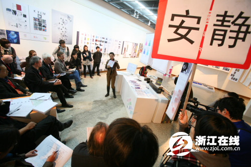這是今天下午在中國美院美術(shù)館中德碩士CDK項目的答辯會,參加答辯的碩士由中國美院和柏林藝術(shù)大學(xué)合作培養(yǎng)。用網(wǎng)絡(luò)的話說,這是一個很開放而且酷斃了的畢業(yè)答辯會,堪稱中國史上最牛。作品也很有意思,比如說“美院象山校區(qū)導(dǎo)向標(biāo)志設(shè)計”,“杭州地鐵標(biāo)識設(shè)計”……大多設(shè)計和我們生活息息相關(guān),甚至和杭州這個城市很合拍,看了展覽你可能對現(xiàn)有的一些城市細節(jié)不滿。