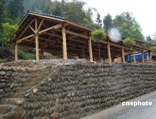 由國(guó)務(wù)院僑辦援建的中國(guó)第一個(gè)“僑愛(ài)家園”本月底將在四川廣元青川縣關(guān)莊、竹園兩鎮(zhèn)建成。約有一百六十戶農(nóng)戶將受益于“僑愛(ài)家園”項(xiàng)目,并在建成后搬進(jìn)新居。該項(xiàng)目的最大特點(diǎn)是采用經(jīng)濟(jì)便宜、抗震堅(jiān)固、建造迅速、節(jié)能環(huán)保的現(xiàn)代輕型木結(jié)構(gòu)建筑。圖為在建中的“僑愛(ài)家園”農(nóng)房。中新社發(fā) 王萌 攝