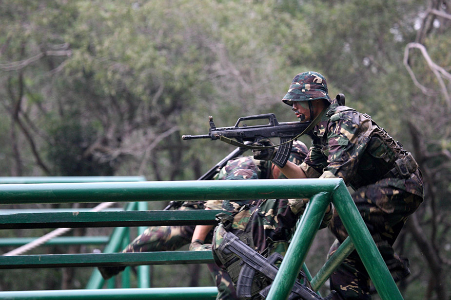 本網(wǎng)記者近日在中國人民解放軍駐香港部隊石崗營區(qū)訓練場,觀看了駐港部隊偵察兵實彈突擊演練。身穿迷彩服、面涂油彩的戰(zhàn)士們冒著“槍林彈雨”,背負槍械攻克障礙,其間穿越火障、跨越滑橋、潛灘暗渡,更肩扛一百公斤的圓木進行二百米極限沖刺。這些障礙項目是對戰(zhàn)士意志、體力與心理的多重磨練,連續(xù)通過二十一個項目,更是挑戰(zhàn)體能的極限。鄭祚聲 攝