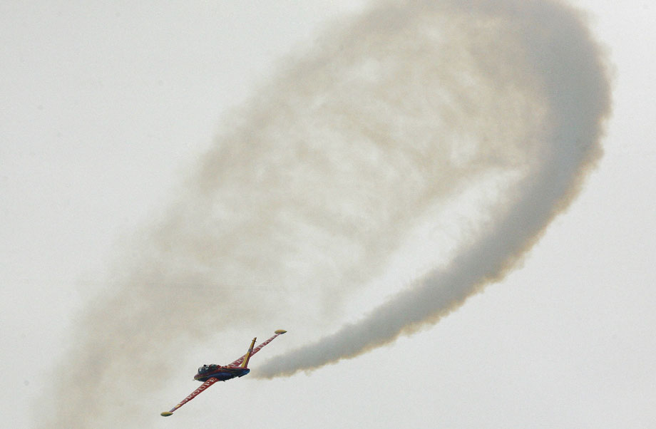 圖為戰(zhàn)斗機教練機進行表演。