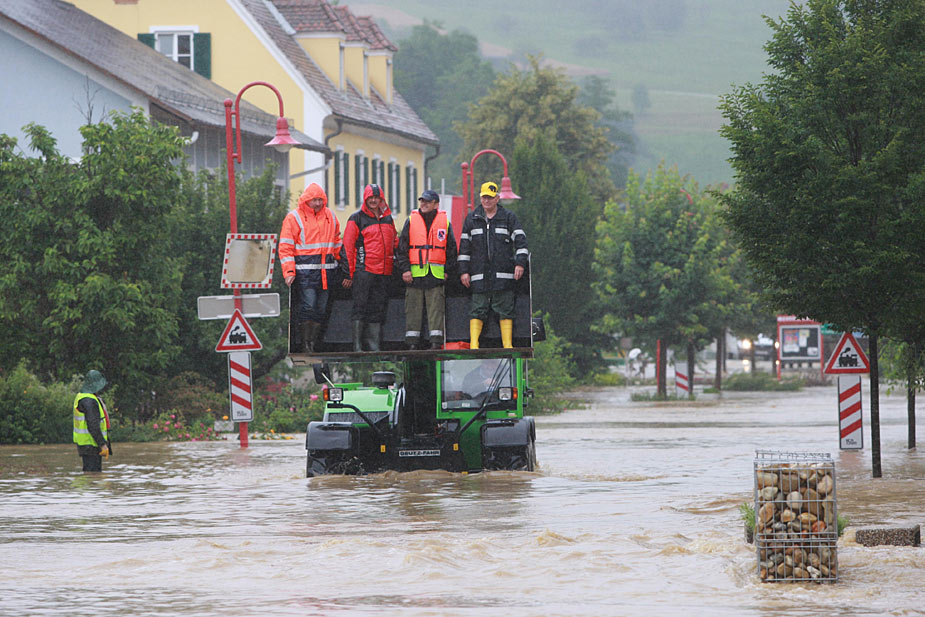 6月24日,奧地利部分地區(qū)由于連日降雨發(fā)生洪災(zāi)。當(dāng)?shù)叵廊藛T緊急出動,用各種工具將災(zāi)民運往安全地帶。