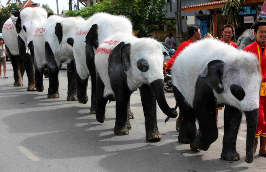 據(jù)英國媒體報道,近日,泰國因一只剛出生的熊貓陷入熱潮,泰國還準(zhǔn)備向公眾征集熊貓幼崽的名字。幾只大象也“妝扮”成熊貓的模樣,借此吸引人們的關(guān)注。
