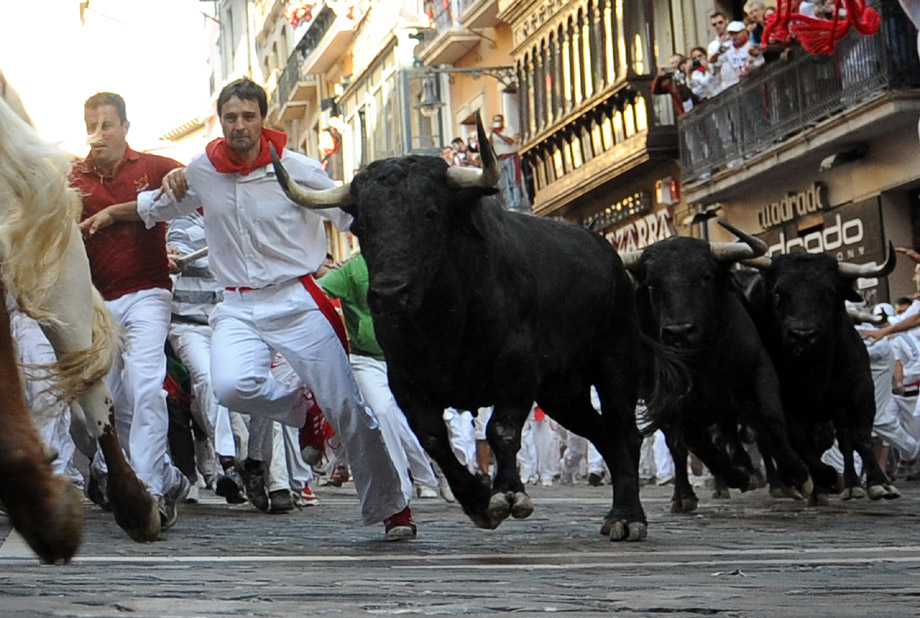西班牙一年一度的潘普洛納奔牛節(jié)上驚險場面層出不窮。奔牛節(jié)是潘普洛納的傳統(tǒng)節(jié)日,其歷史可以追溯到1591年,每年都吸引數(shù)十萬人參加。