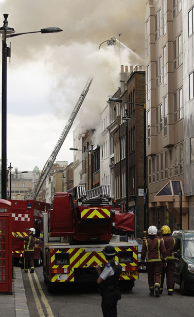 英國倫敦中部蘇豪區(qū)在當(dāng)?shù)貢r間10日下午2時左右發(fā)生火警,起火的5層高商業(yè)樓宇被嚴(yán)重焚毀,現(xiàn)場冒出大量濃煙,在倫敦市內(nèi)多處均清楚可見。消防部門派出12輛消防車及60名消防員進行灌救。