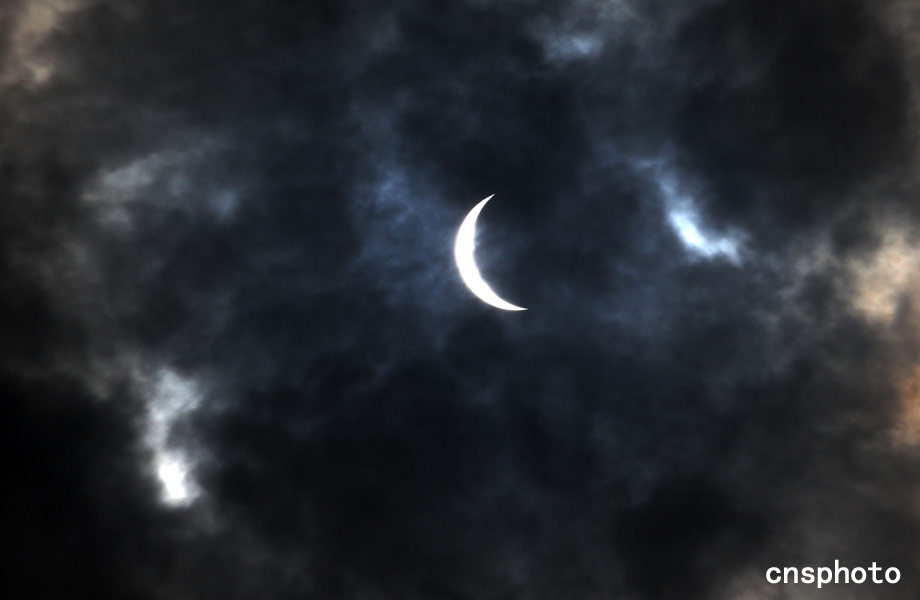 7月22日上午,由于連云港天空云層較厚,給觀察拍攝日全食帶來困難。但通過耐心等待,日全食演變的部分過程還能透過云層時斷時續(xù)地看到。因受地理位置等因素的影響,連云港市只能看到90%的日偏食。