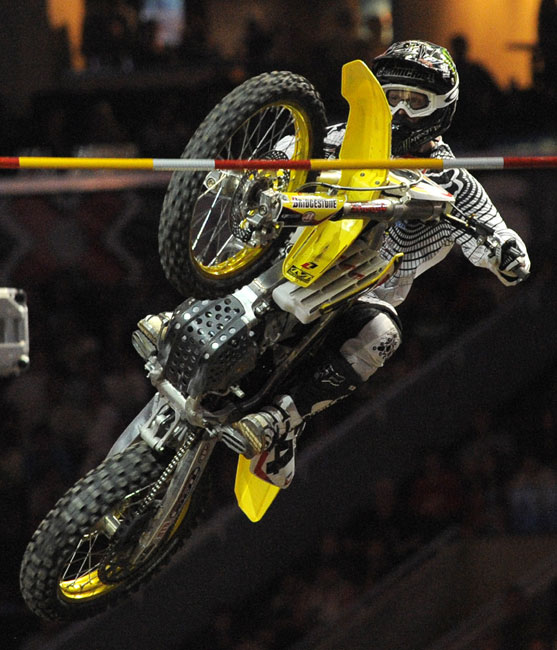 極限大賽上演驚險(xiǎn)的摩托車過桿表演