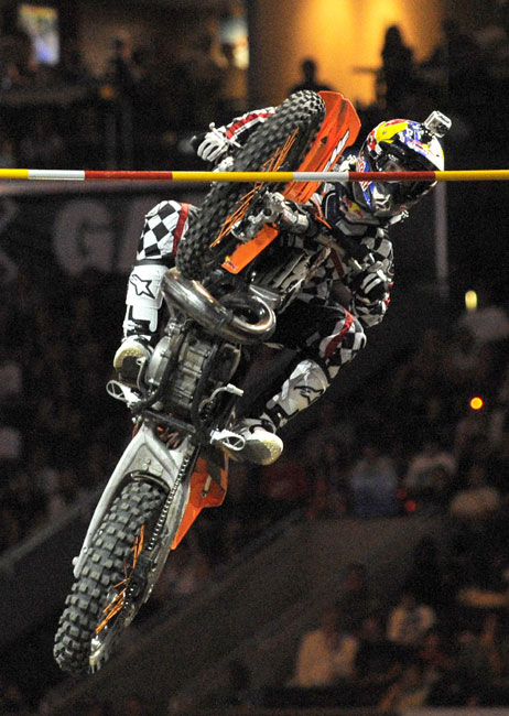 當?shù)貢r間7月30日,美國洛杉磯舉行了一場極限摩托大賽,各路好手上演了摩托車跨越高桿的精彩表演。
