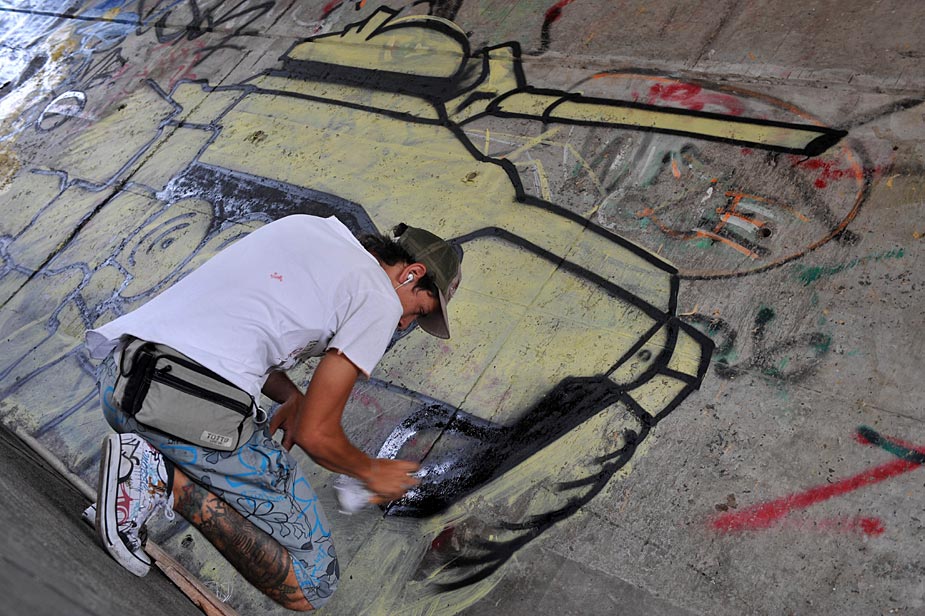近日,哥倫比亞考卡山谷省卡利市的年輕人用涂料在墻上涂鴉,表達(dá)他們對世界的看法。