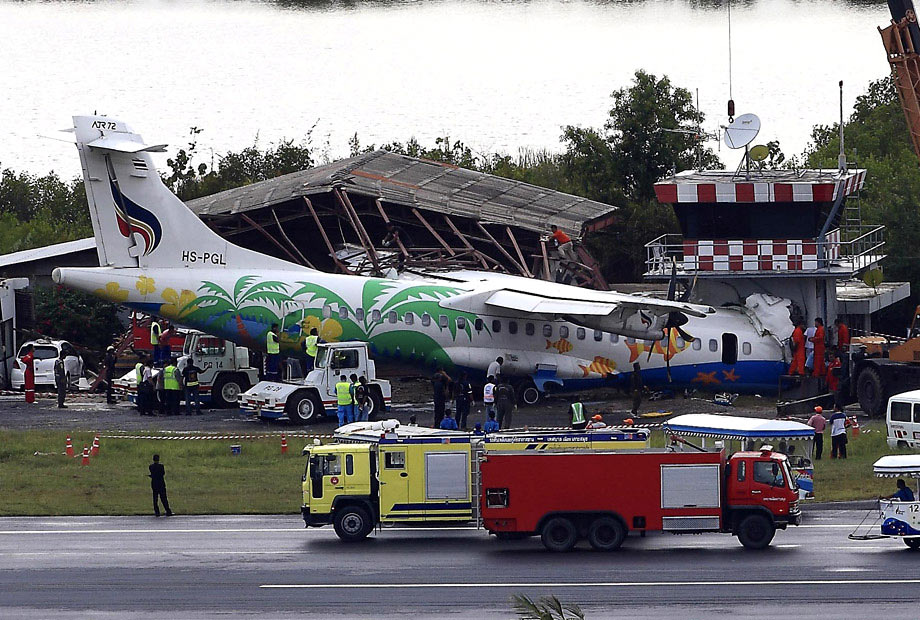8月4日,曼谷航空公司一架客機(jī)在泰國(guó)南部蘇梅島機(jī)場(chǎng)著陸時(shí)沖出跑道,并與一座航空控制塔相撞。飛機(jī)上載有68名乘客和4名機(jī)組人員。