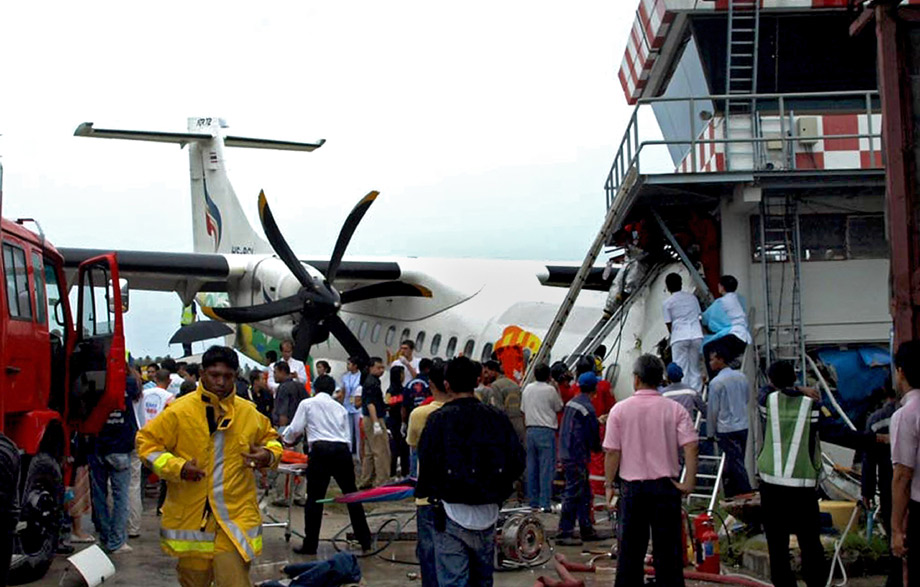 8月4日,曼谷航空公司一架客機(jī)在泰國(guó)南部蘇梅島機(jī)場(chǎng)著陸時(shí)沖出跑道,并與一座航空控制塔相撞。飛機(jī)上載有68名乘客和4名機(jī)組人員。