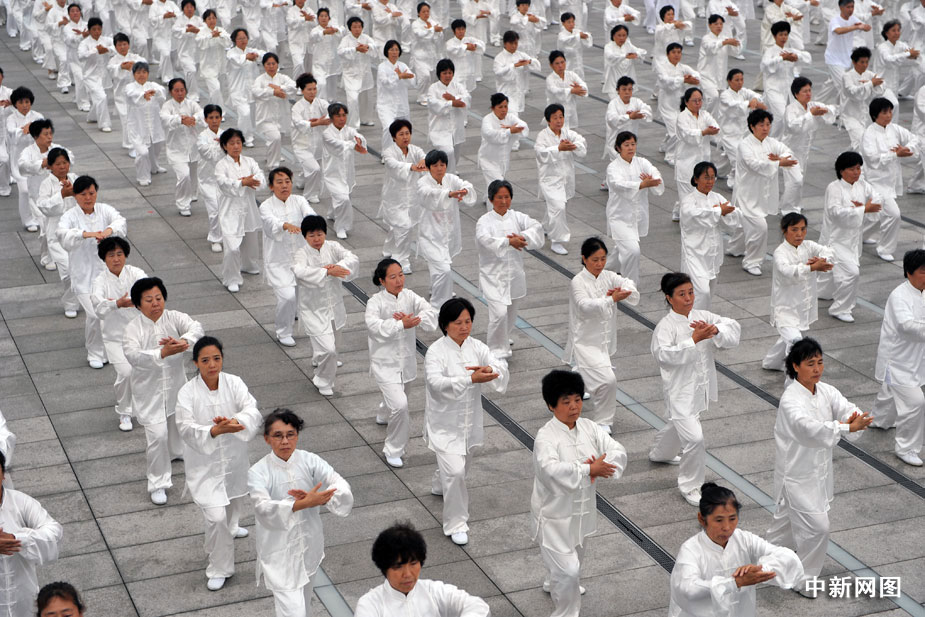 8月8日,全國首個“全民健身日”北京主會場啟動儀式上,三萬多群眾進(jìn)行太極拳展示活動,在世界吉尼斯總部認(rèn)證官員的見證下成功打破世界紀(jì)錄。中新網(wǎng)記者 金碩 攝