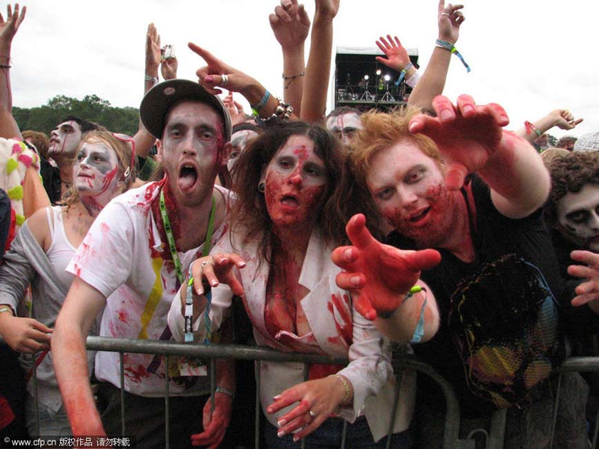 2009年8月6日,英國赫里福德郡Eastnor城堡,人們化裝成“僵尸”出現(xiàn)在大寒音樂節(jié)上,欲打破同一地點聚集最多“僵尸”的世界紀(jì)錄。
