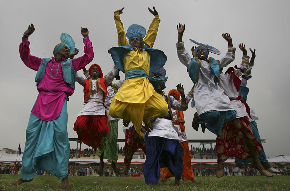 圖為印度民眾跳起歡樂的舞蹈,慶祝獨立62周年。