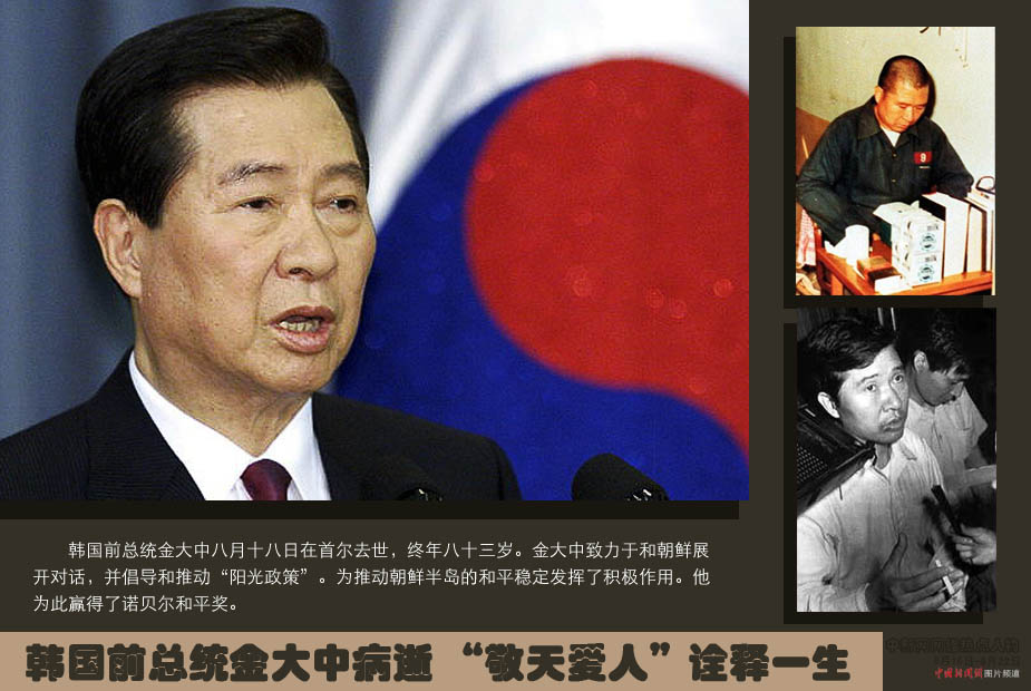 中新網(wǎng)本周熱點(diǎn)人物之——金大中 他經(jīng)歷了暗殺、綁架、監(jiān)禁、流亡等諸多磨難,幾乎嘗遍世間的辛酸苦辣,直接損害了他的健康。在朝鮮戰(zhàn)爭期間,他差點(diǎn)被處決。在一次針對他的綁架中,他險(xiǎn)些被淹死。在一次精心策劃的車禍中,他大難不死,但落下了終身殘疾,走路只能跛著腳。