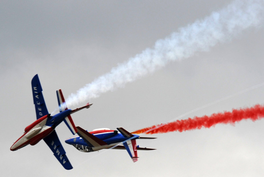 8月21日,在俄羅斯茹科夫斯基市舉行的第九屆國際航空航天展覽會(huì)上,法國著名的“法蘭西巡邏兵”飛行表演隊(duì)進(jìn)行了精彩的飛行表演。
